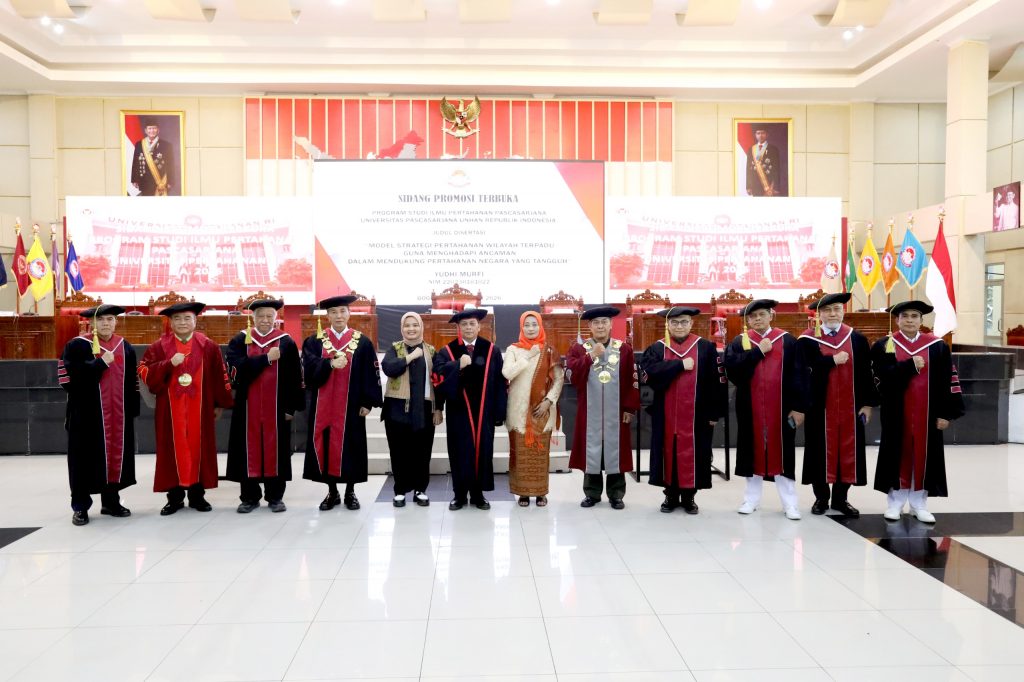 Melalui sidang promosi ini, Unhan RI kembali menegaskan komitmennya dalam melahirkan doktor-doktor yang tidak hanya unggul secara akademik, tetapi juga mampu memberikan kontribusi strategis bagi penguatan sistem pertahanan negara, khususnya dalam pengembangan strategi pertahanan wilayah yang adaptif, terintegrasi, dan berkelanjutan.